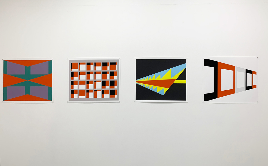 The print portfolio screams out its geometries and calms itself down with both contrasting and complementary colours, while allowing for a few playful cartwheels around the gallery walls. Collectively, it had me hopping around the gallery in dumb excitement, my highest form of both praise and audience engagement.