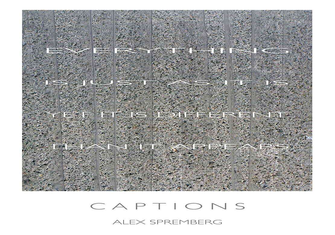In this publication, the captions are not separate; they are integral to the image. They neither illustrate nor explain. Rather they explore a parallel tale that the photographs by themselves do not provide. Text and image together function almost like a short film, a scene from a movie that stimulates a continued narrative. These “film-stills” are one-picture movies that have the capacity to reverberate for an extended period in the mind of the viewer.