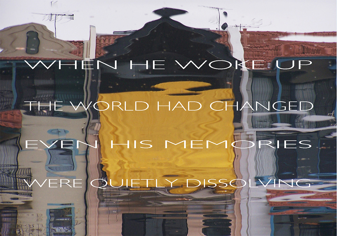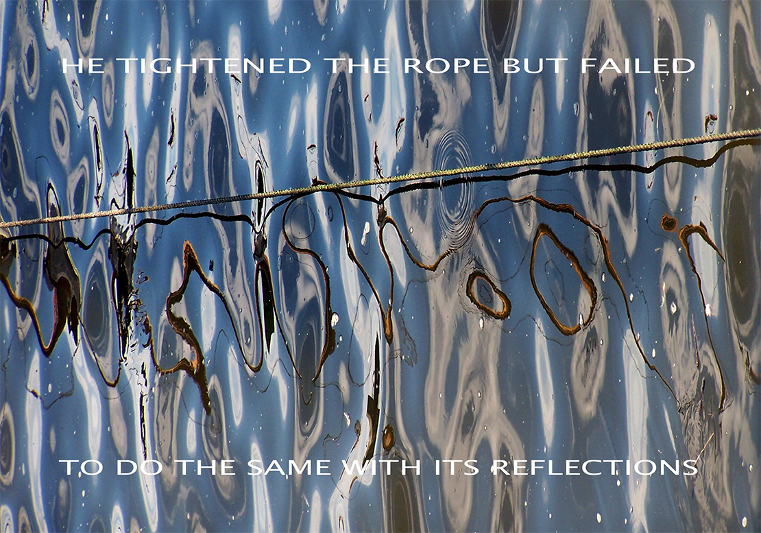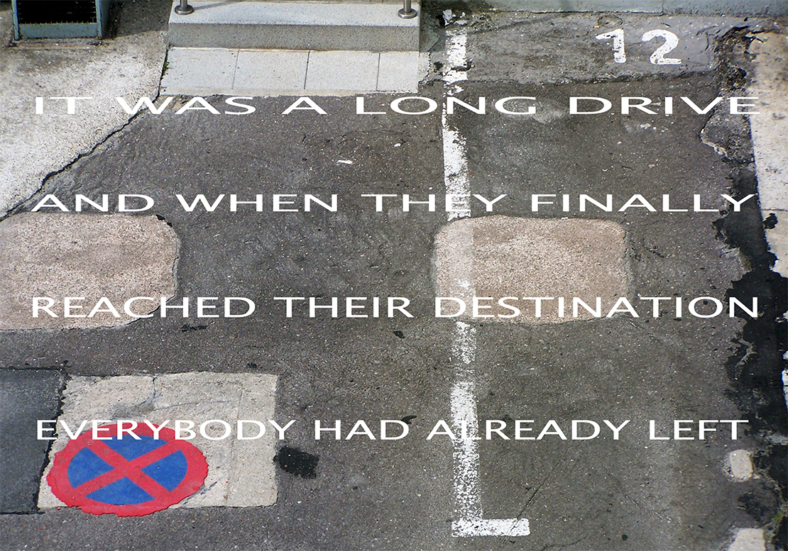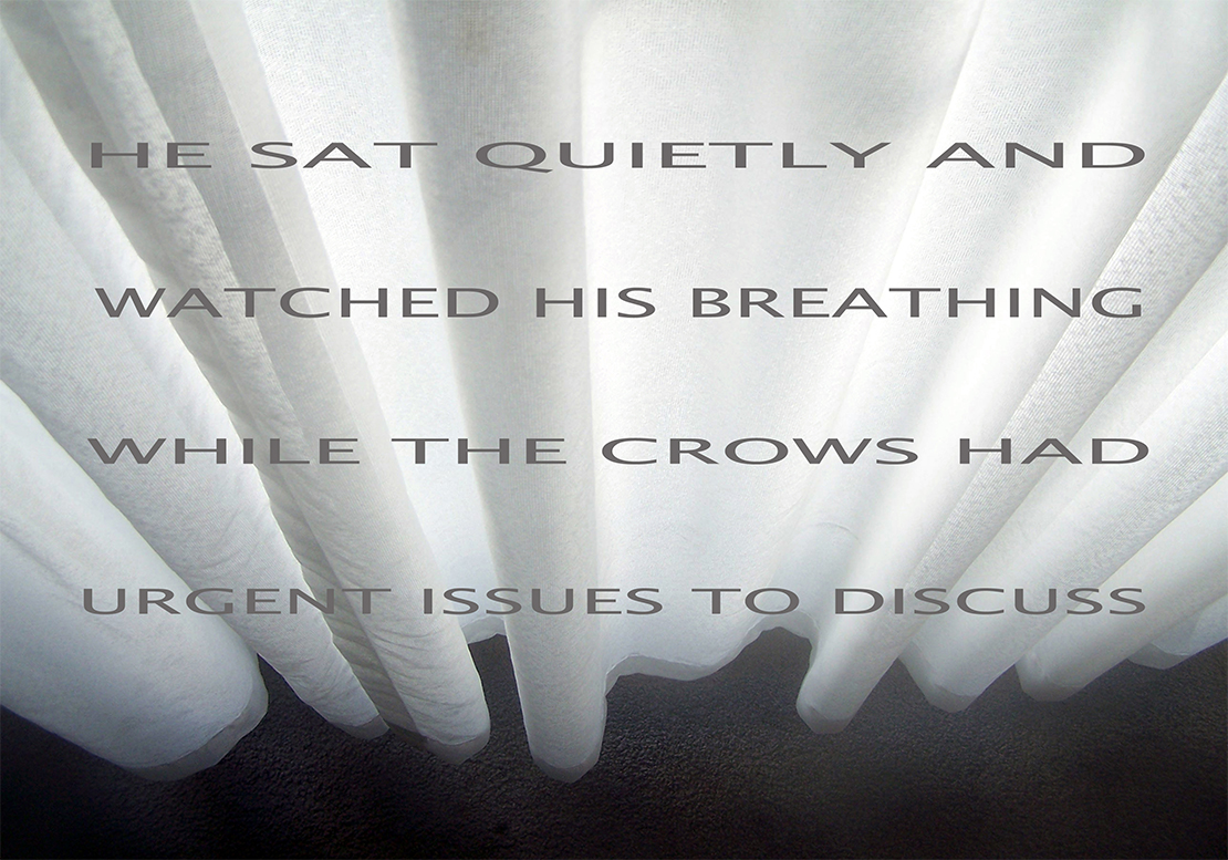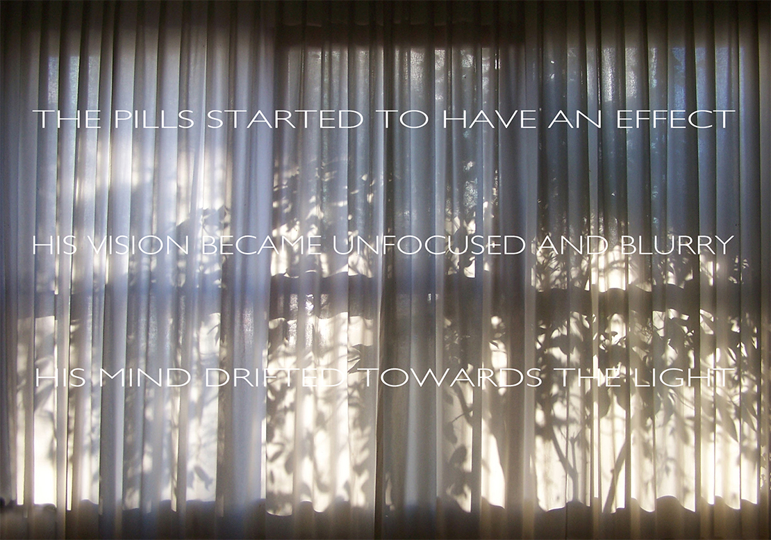 I had accumulated pages of these short verses when I looked at some of my recent photographs. I began to wonder what these words would do to the photographs and how the photographs could in turn alter the meaning of the words. Once I made this connection the process became reciprocal. The texts were tested with different photographs creating various results and some of the photographs inspired new lines of text.
