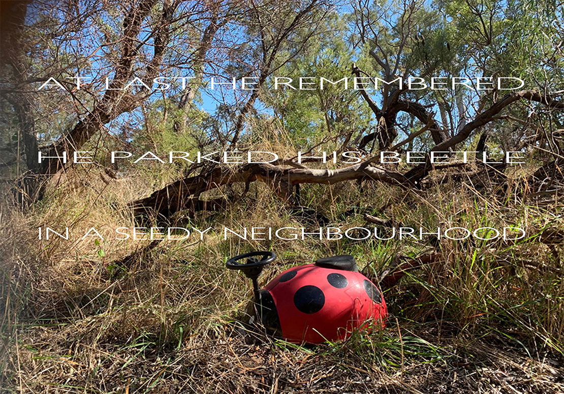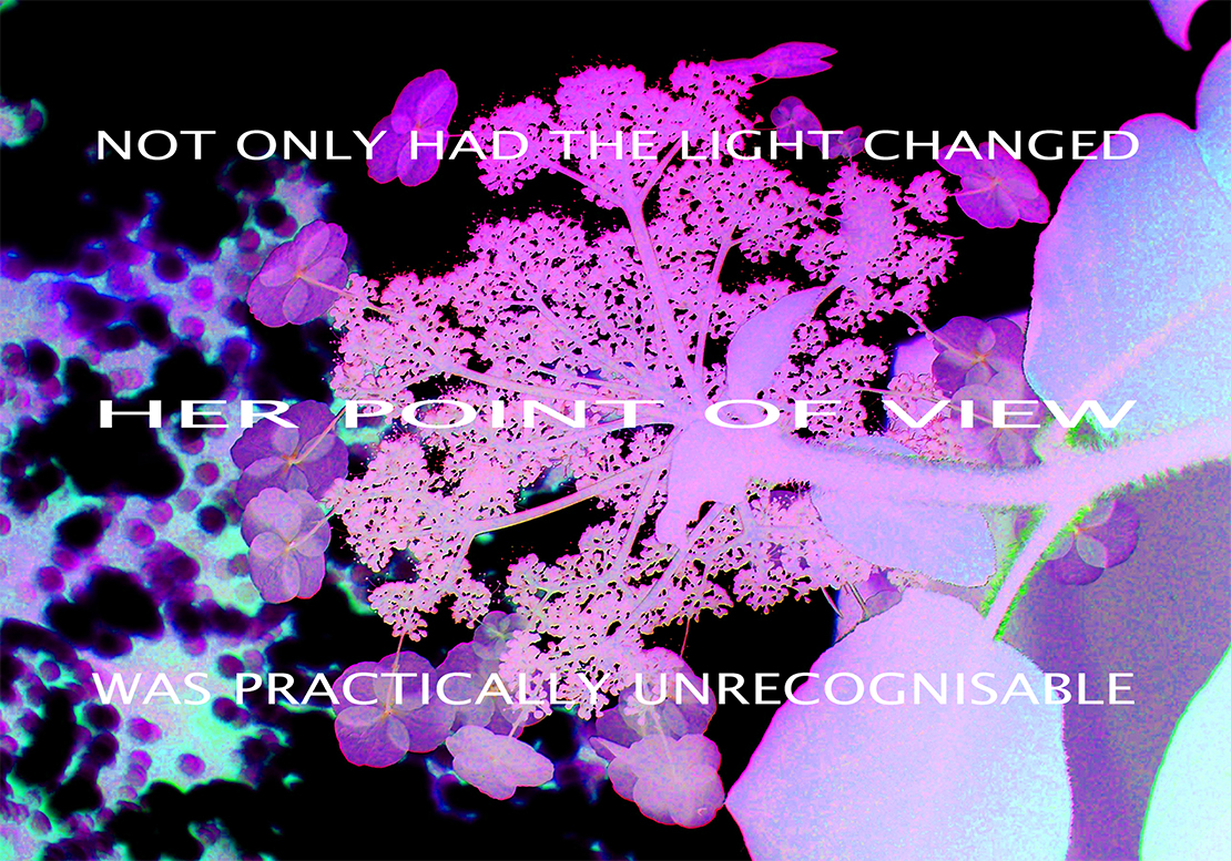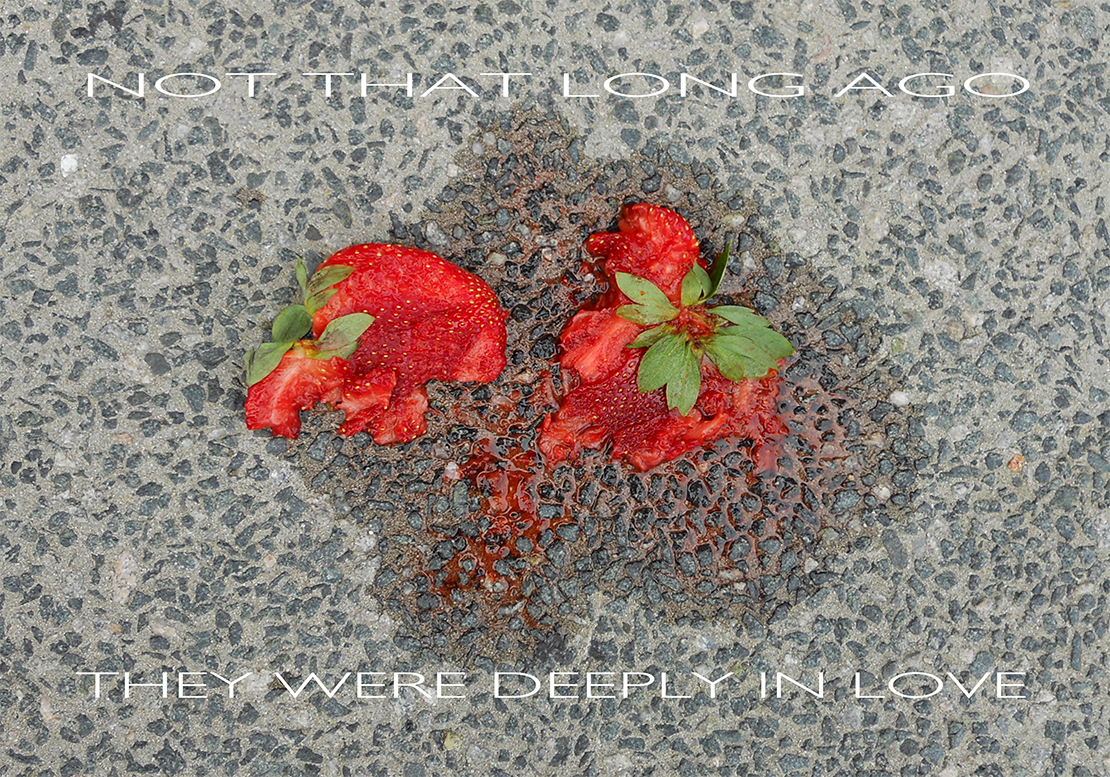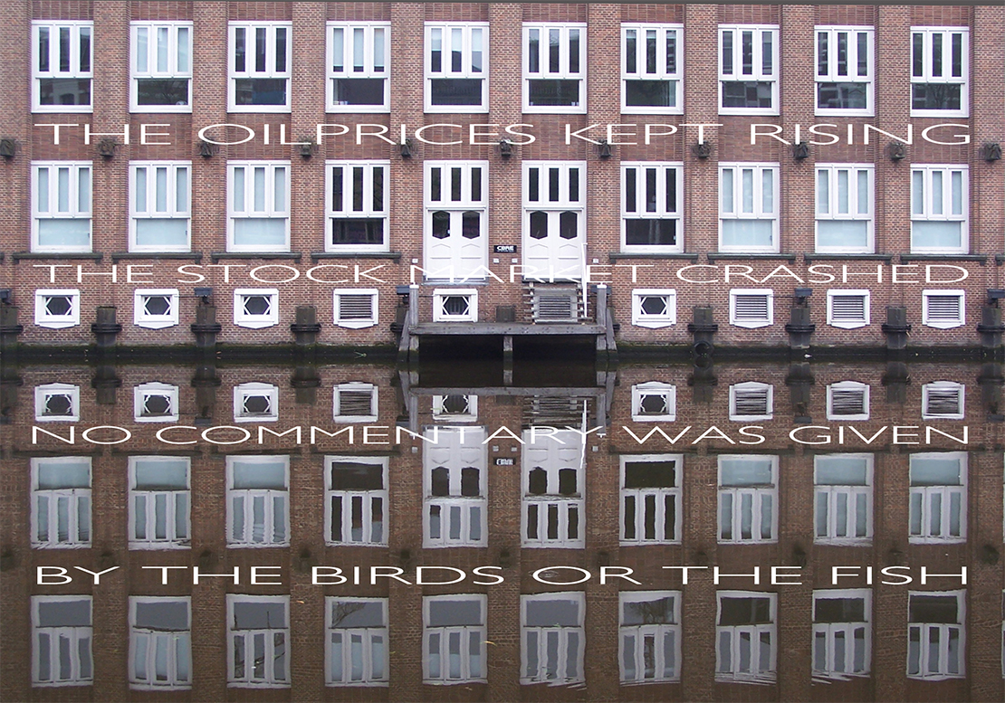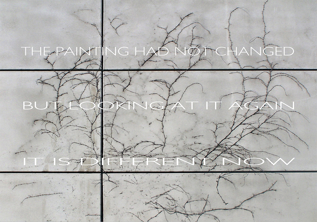 I had accumulated pages of these short verses when I looked at some of my recent photographs. I began to wonder what these words would do to the photographs and how the photographs could in turn alter the meaning of the words. Once I made this connection the process became reciprocal. The texts were tested with different photographs creating various results and some of the photographs inspired new lines of text.