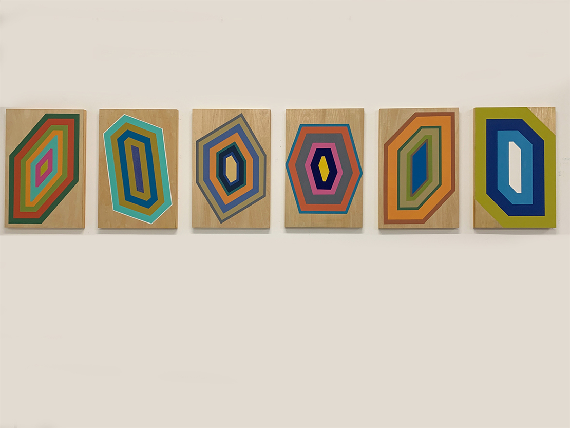 Portals (s) #1-6, 2025. Enamel on wood, 40 x 30 x 2 cm.